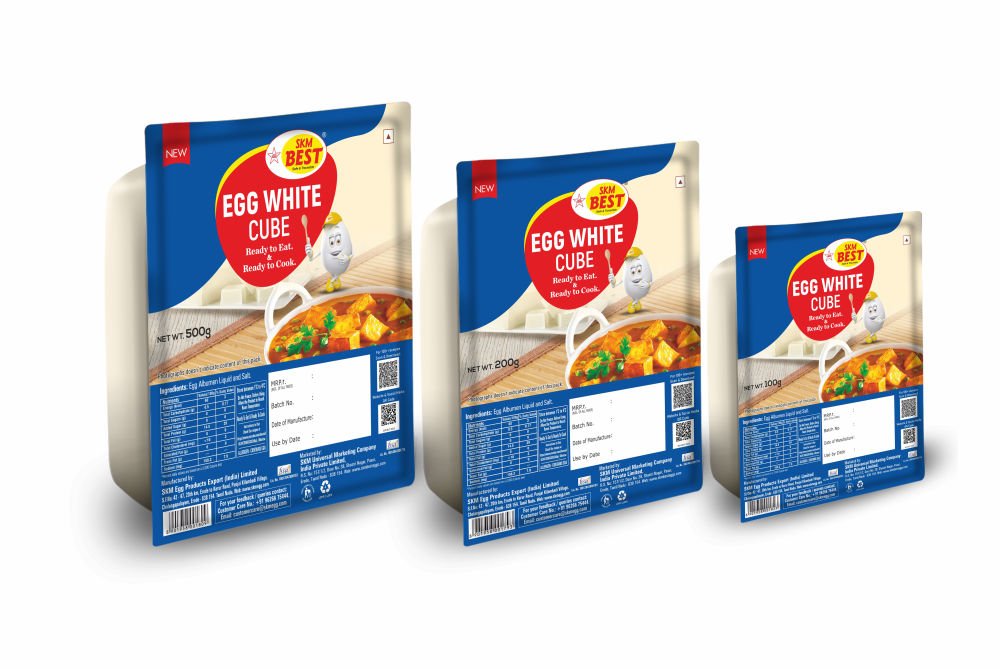 The Egg white cube is an innovative food product of SKM Best Eggs. The cube-shaped egg white helps you to cook your dishes in several ways depending on your taste requirements. Egg white cubes have zero fat in it. These cubes do not have any preservatives. The hens of the SKM Best Eggs are fed with a healthy diet. Also, it doesn’t contain any fishy odour in it. These make our product as the best egg white cube in the market. Egg white cube is a premium quality product as our hens are fed with food which is free from antibiotics and pesticides.